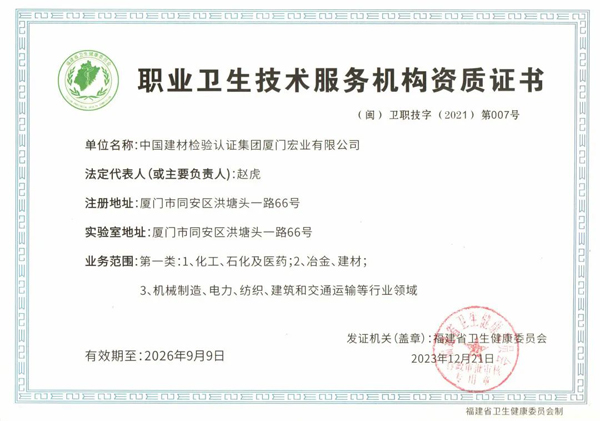 近日,中國建材檢驗(yàn)認(rèn)證集團(tuán)廈門宏業(yè)有限公司(簡稱國檢集團(tuán)廈門公司)在福建省環(huán)境監(jiān)測行業(yè)協(xié)會組織開展的福建省生態(tài)環(huán)境監(jiān)測社會化服務(wù)機(jī)構(gòu)綜合能力等級評定工作中,被確定為福建省生態(tài)環(huán)境監(jiān)測社會化服務(wù)能力一級...